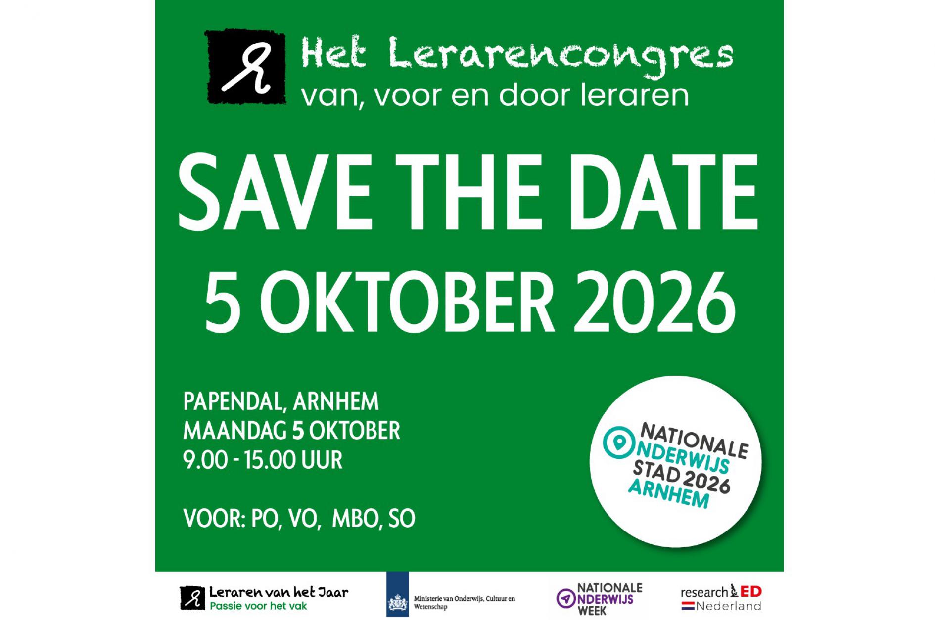 Op 5 oktober 2026 organiseert de Stichting Leraren van het Jaar in samenwerking met het Ministerie van OCW, Stichting Nationale Onderwijsweek en researchED Nederland een nieuwe editie van Het Lerarencongres. Een onderwijscongres volledig van, voor en door leraren op Papendal in Arnhem Nationale Onderwijsstad 2026. Een dag vol onderwijsinhoud, samen professionaliseren met als afsluiting de bekendmaking van de nieuwe Leraren van het Jaar 2026 in de categorieën po, vo, mbo en so.